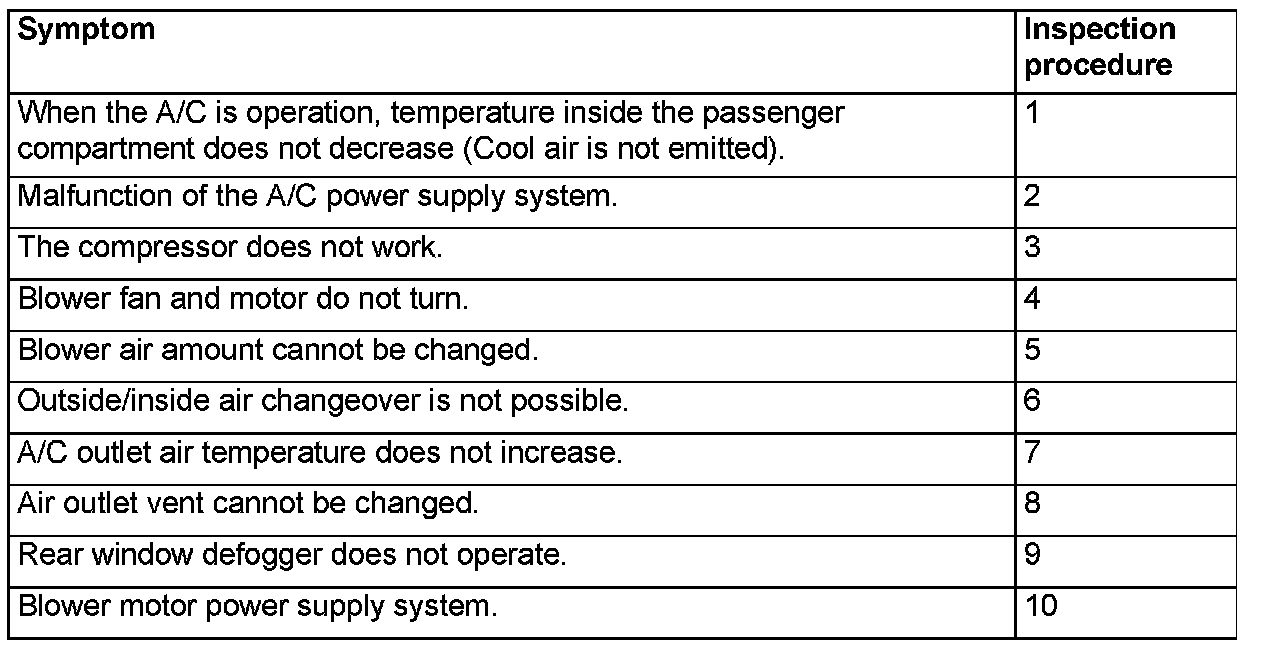 MANUAL A/C DIAGNOSISSYMPTOM CHART
