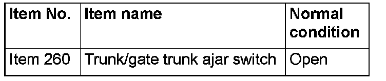 Q: Does scan tool MB991958 display the item "Trunk/gate trunk ajar switch" as normal condition?