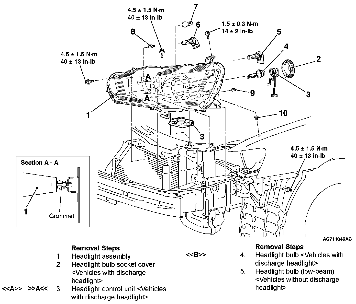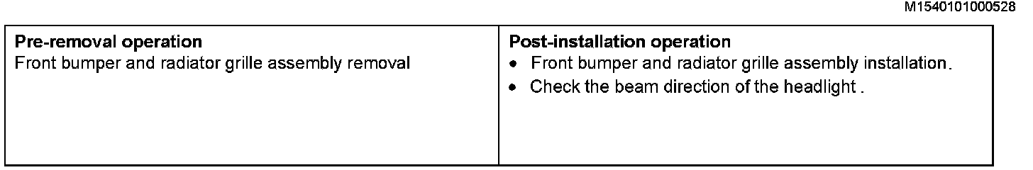 HEADLIGHT REMOVAL AND INSTALLATIONPre-removal Operation & Post-installation Operation: