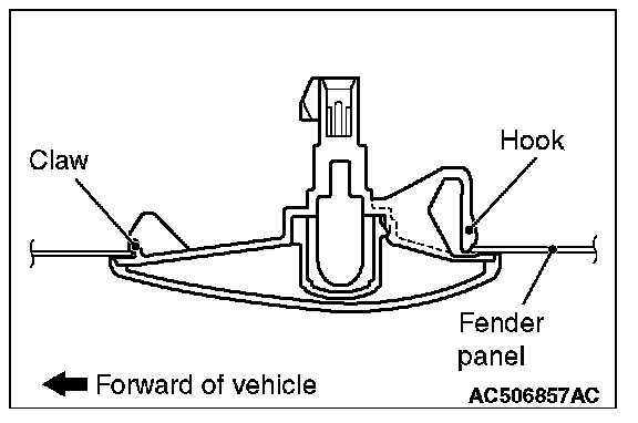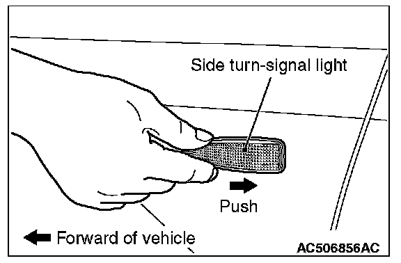 Push the side turn-signal light toward the vehicle rear to bend the hook, and then remove by disengaging the tab from the fender panel.
