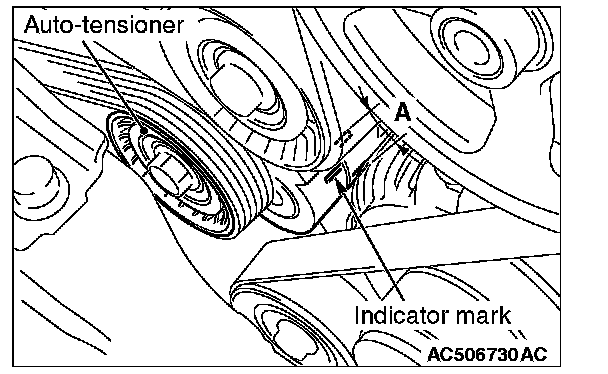 3. Make sure that the indicator mark on the auto-tensioner is within the area marked with A in the illustration.