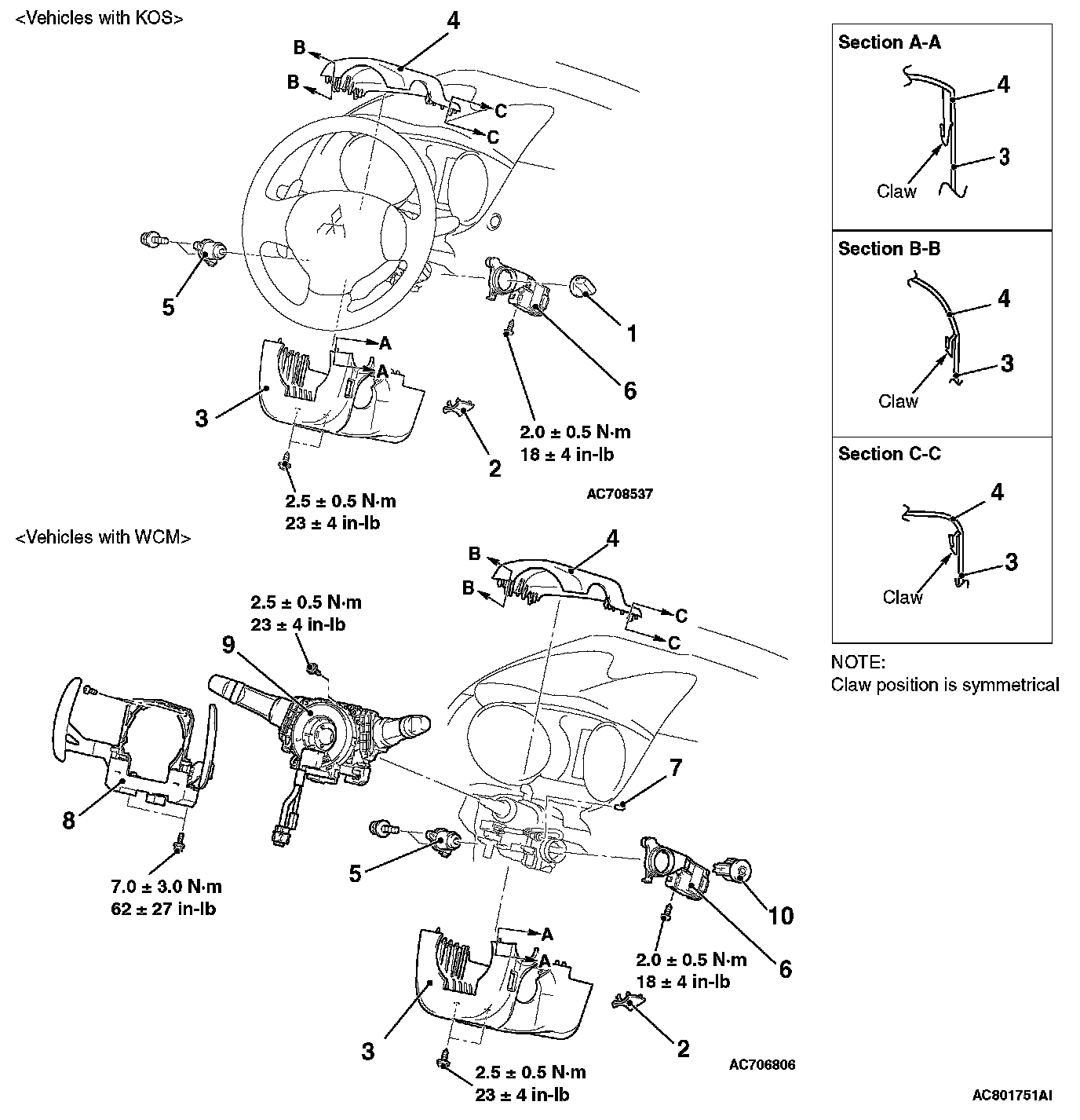 - After the installation, perform a calibration for the ASC-ECU to learn the steering wheel sensor neutral point (Refer to On-vehicle Service - Steering Wheel Sensor Calibration). [Vehicles with WCM and ASC]