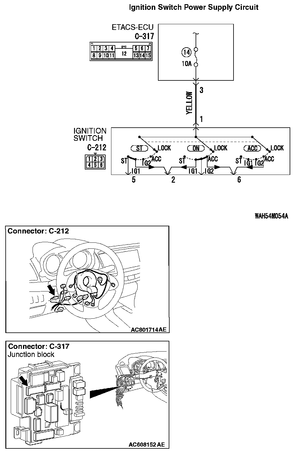 STEP 5. Check the Wiring harness between ignition switch connector C-212 (terminal No.1) and ETACS-ECU connector C-317 (terminal No.3).