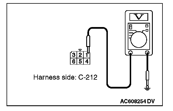 STEP 2. Check the battery power supply circuit to the ignition switch. Measure the voltage at ignition switch connector C-212.