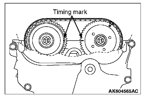 11. After installing the timing chain, measure the valve clearance using the procedure 3 to 6. Confirm the clearance is within the standard value.