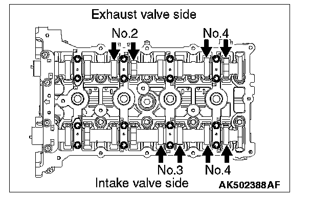 1) Temporarily tighten to the following torque in order shown in the illustration.