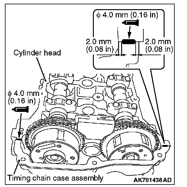12. After completely removing the liquid gasket adhering on the timing chain case, cylinder block and cylinder head, degrease them with white gasoline.