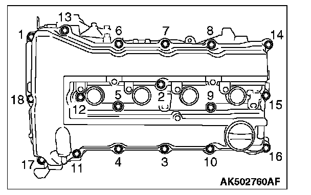 14. Install the cylinder head cover and tighten the tightening bolts using the following procedures.