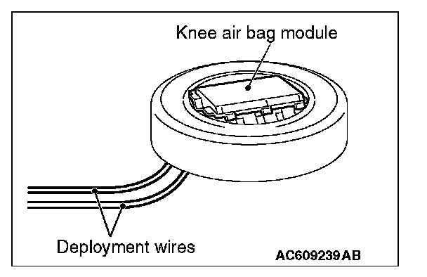 CAUTION: Once disconnected, both electrodes of the knee air bag module connector short automatically to prevent accidental deployment caused by static etc. Still, in consideration of possible accidental deployment, store the air bag module on flat place with deployment surface facing up. Do not put anything on it.