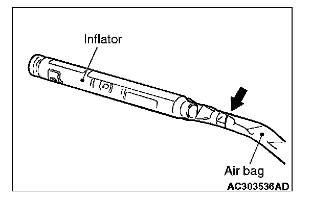 3. Cut the inflator from the air bag as shown in the figure using a cutter or a similar tool.