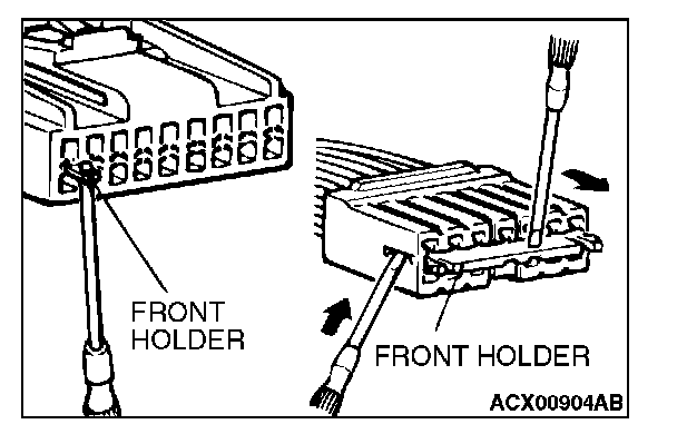 1. Insert a screwdriver [1.4 mm (0.06 inch) width] as shown in the figure, disengage the front holder, and remove it.