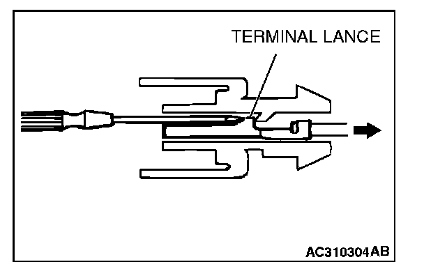Loosely engaged terminals can be repaired by removing the female terminal from the connector housing and raising its lance to establish better engagement. Removal of the connector terminal used for MFI and INVECS-II A/T control circuit can be done in the following manner.