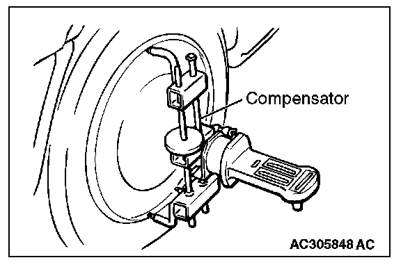^ For FWD vehicles with aluminum wheels, attach the camber/caster/kingpin gauge by using a compensator