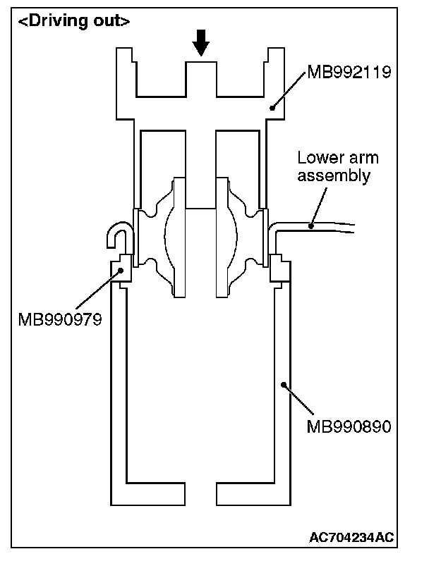 1. Use special tools M13992119, MB990979 and MB990890 to remove the bushing.