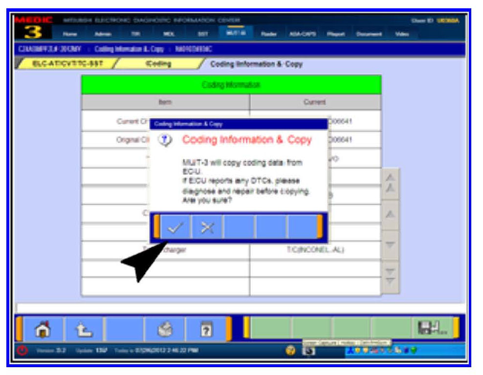 7. The Coding Information & Copy dialog box appears. Verify no DTC's exist in the system prior to saving this information.