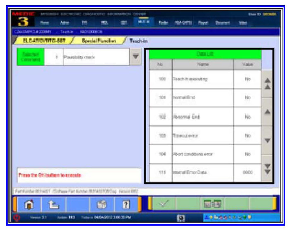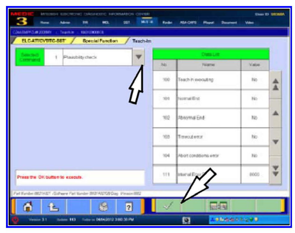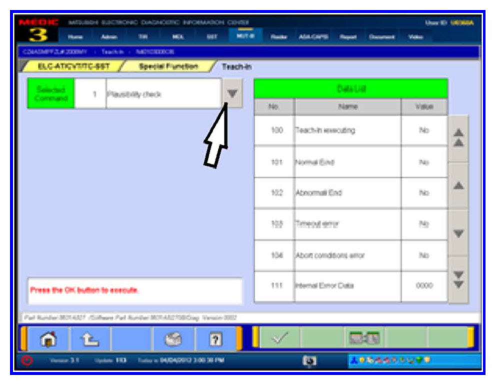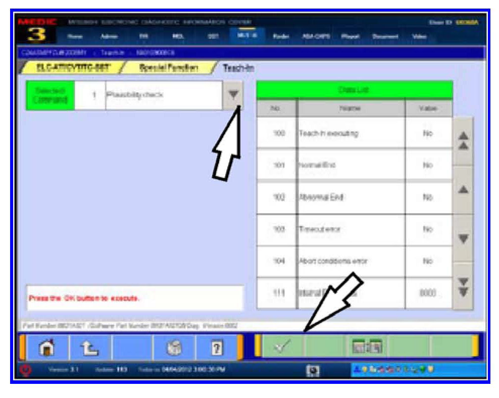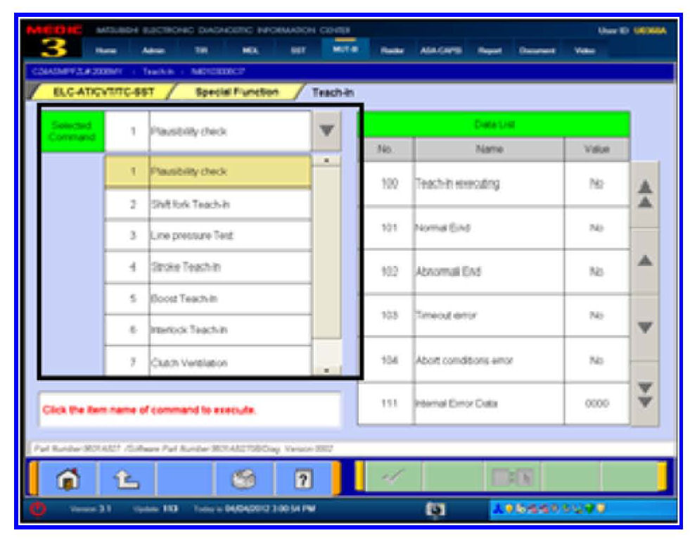 19. Select Plausibility Check from the Selected Command column. REPEAT Plausibility Check for Clutch Teach-In.