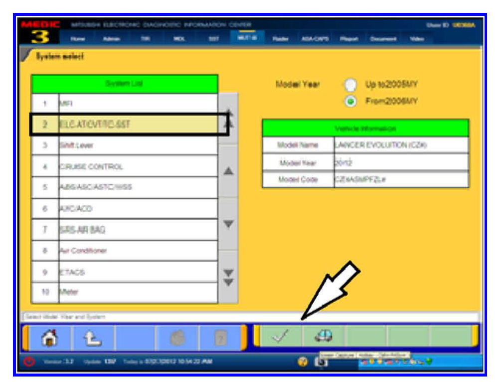 3. Select ELC-AT/CVT/TC-SST from the System List and click the check mark to continue.