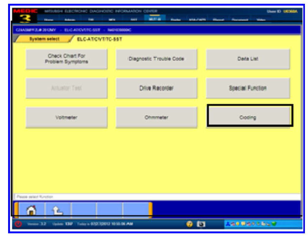 1. Turn the ignition to the ON (RUN) position.2. From the MUT-III Main Menu, click System