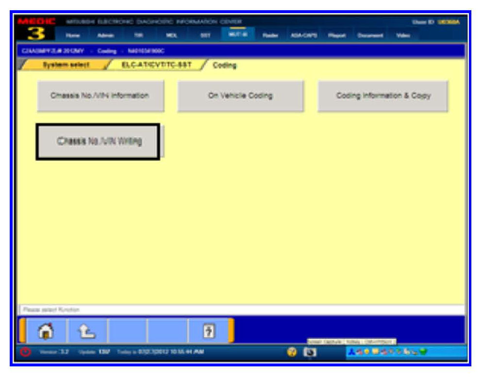 5. Click the Chassis No/VIN Writing button.