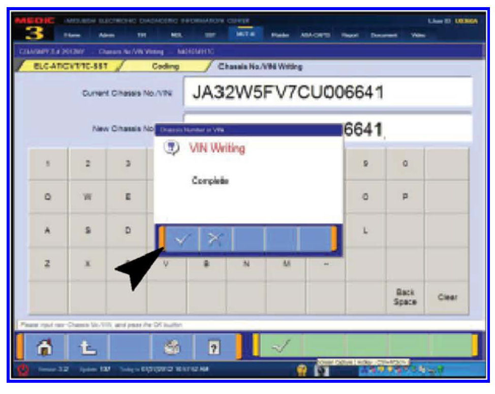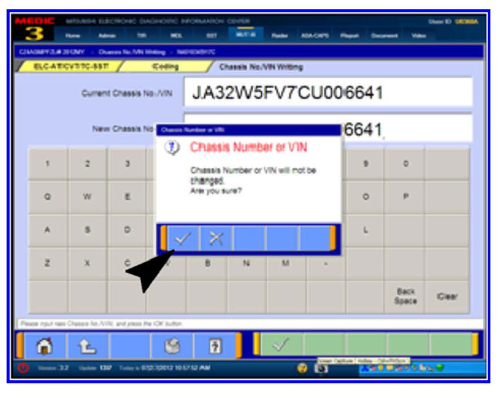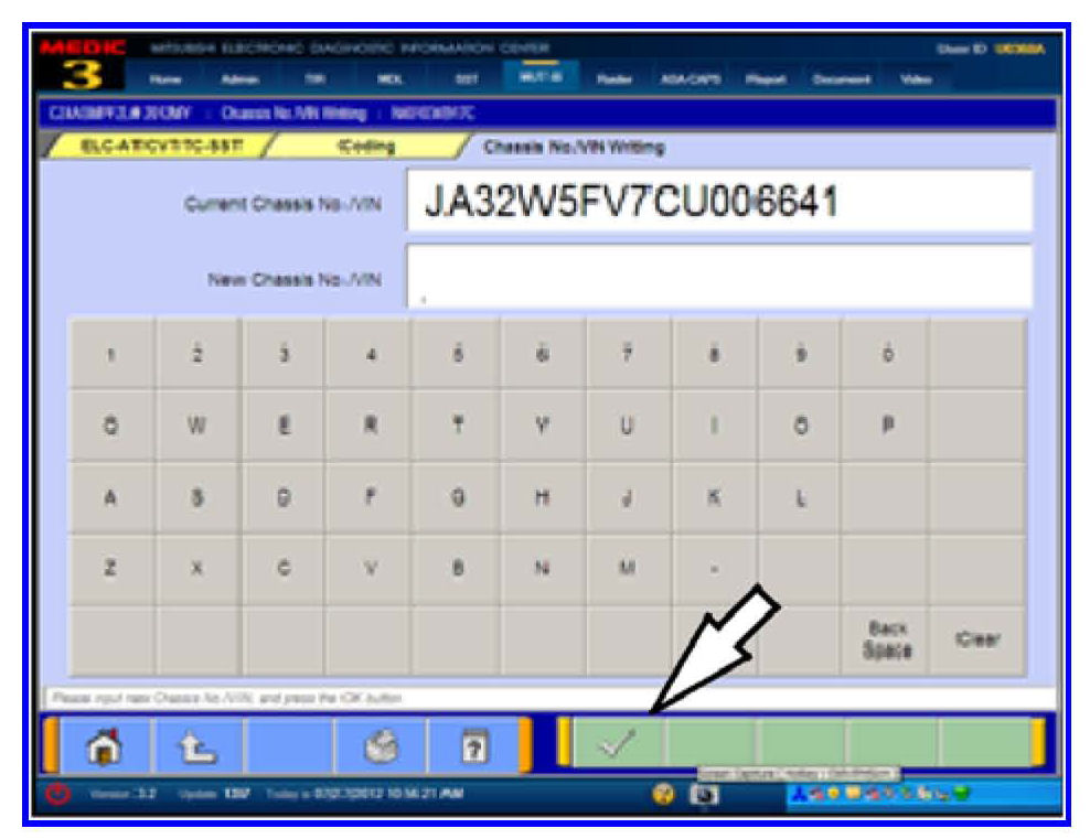 7. Click the check mark in the VIN Writing dialog box to continue.