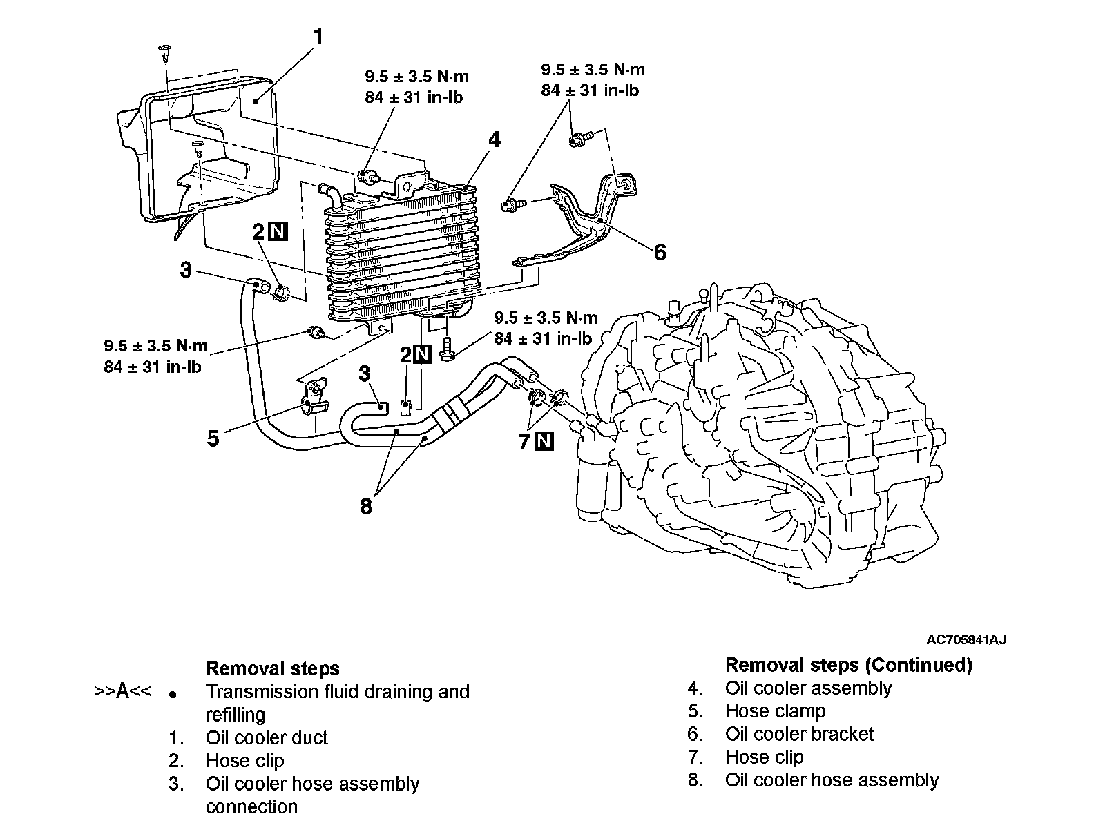 ^ If the oil cooler is repaired, fill new fluid and check the transmission fluid level.
