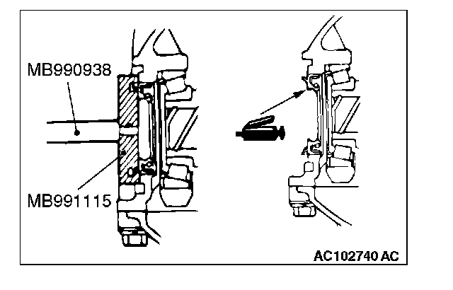 3. Use special tools MB990938 and MB991551 to press-fit a new oil seal.