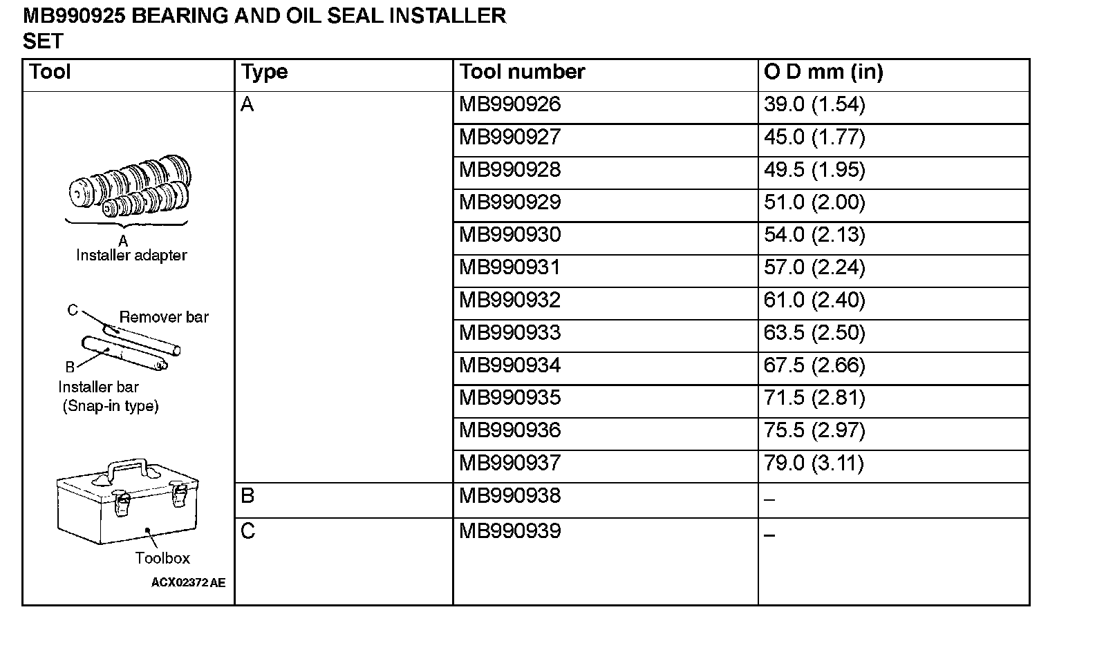 MB990925 BEARING AND OIL SEAL INSTALLER SET