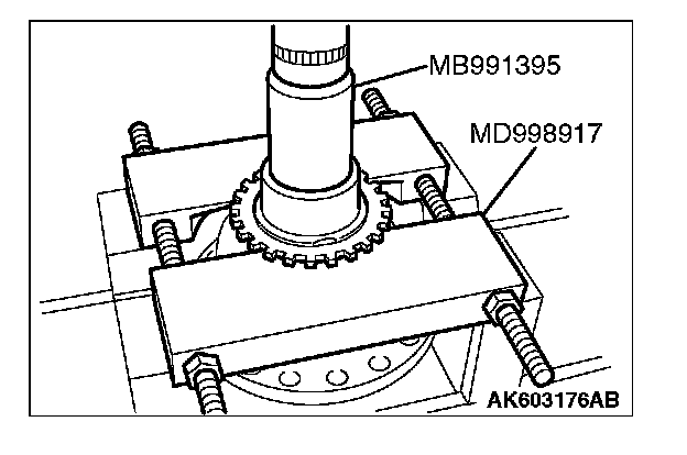 1. Using special tool MD998917 and MB991395, support the speedometer drive gear, and then set them on the press.