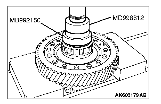 Using special tools MD998812 and MB992150, install the tapered roller bearing inner race.
