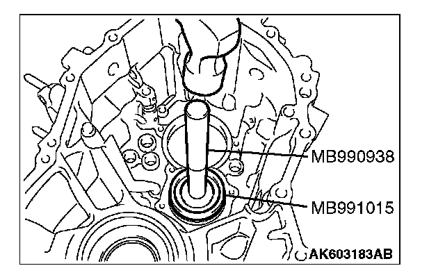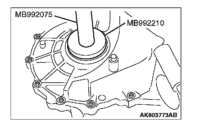 1. Using special tools MB992210 and MB992075, press-fit the oil seal until the difference in height between the transaxle case and oil seal is obtained as shown.
