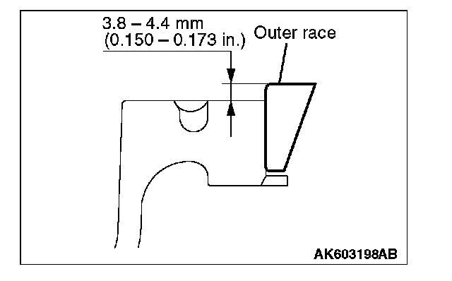 2. Press-fit the tapered roller bearing outer race to the height shown in the illustration.