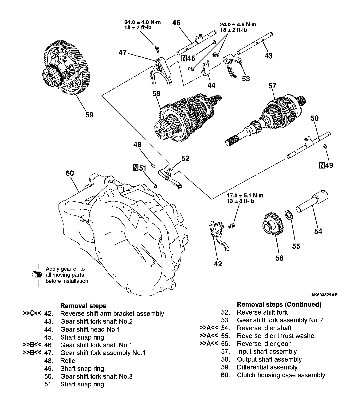 Specified grease: Mitsubishi Part No. 0101011 or equivalent
