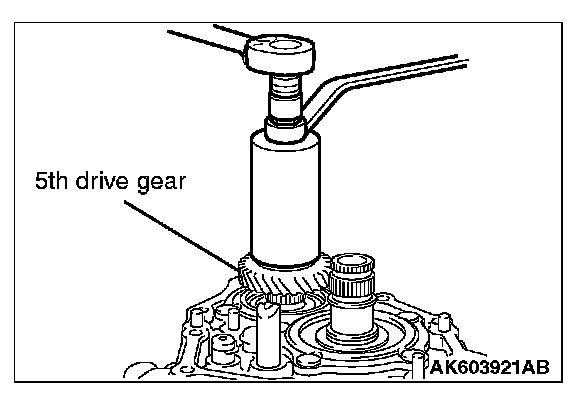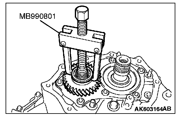 Using special tool MB990801, remove the 5th drive gear.