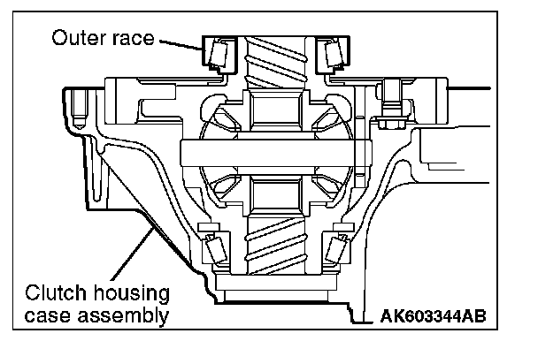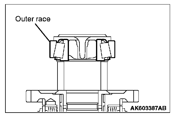 3. To fit the tapered roller bearing outer race, rotate the differential assembly by hand about 10 times.
