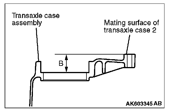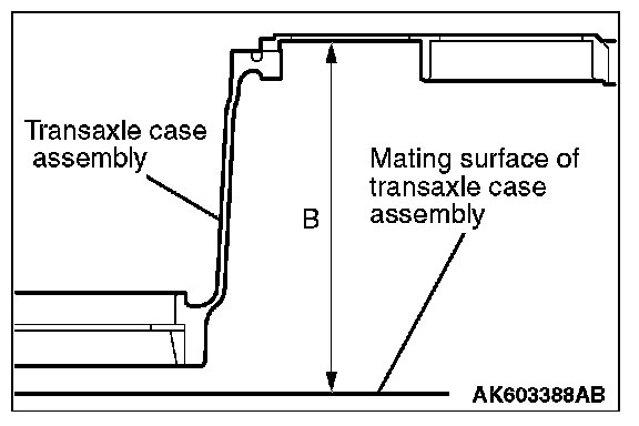 5. Put the straight edge on the mating surface of the transaxle case assembly and measure the dimension "B" with a vernier caliper.
