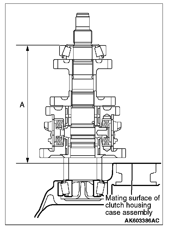 4. Put the clutch housing case assembly on the surface table and use a height gauge to measure the dimension "A" which is from the mating surface of the clutch housing case assembly to the end surface of the tapered roller bearing outer race.