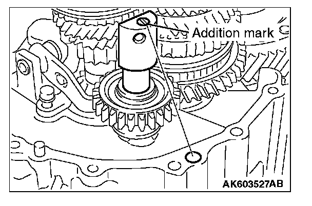 2. Before installing the transaxle case assembly, confirm that the reverse idler gear addition mark is positioned as show in the illustration.
