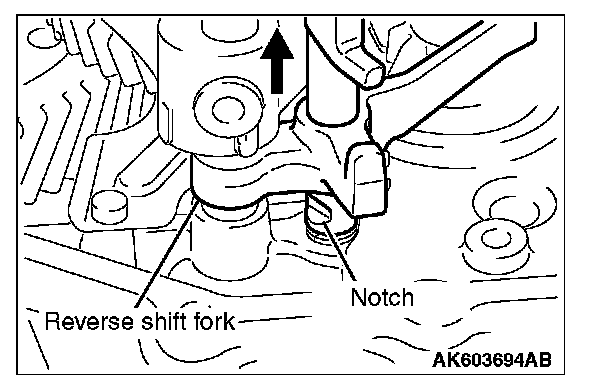 Fit the arm tip of the reverse shift fork into the mating slot in the reverse shift arm bracket assembly.