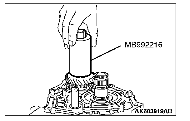 3. Set special tool MB992216 on top of the 5th drive gear.