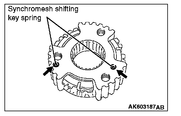 2. Make sure that the rotation stops of the synchromesh shifting key springs No. 3 fit into the mating holes in the synchronizer ring assembly.
