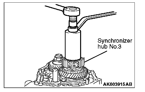 5. Set special tool MB992216 on top of the synchronizer hub No. 3.