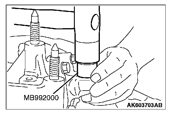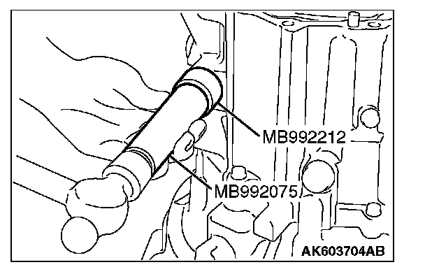 1. Using special tool MB992212 and MB992075, install the oil seal.