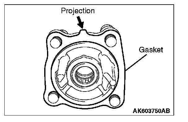 Install the control shift retainer gasket to the control shaft cover with the projection of the gasket in the illustrated position.