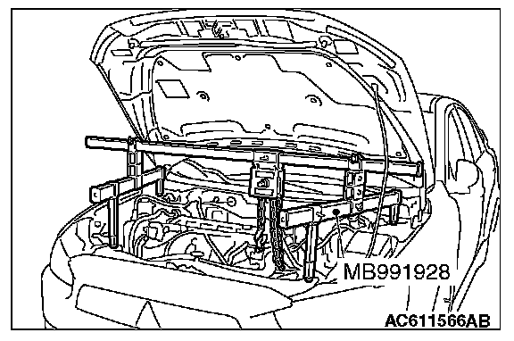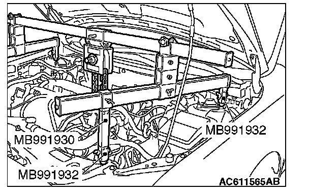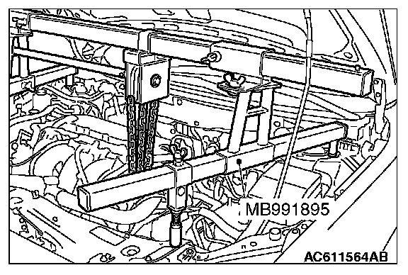NOTE: Slide the front foot of the engine mechanical hanger (Special tool: MB991895) to balance the engine hanger