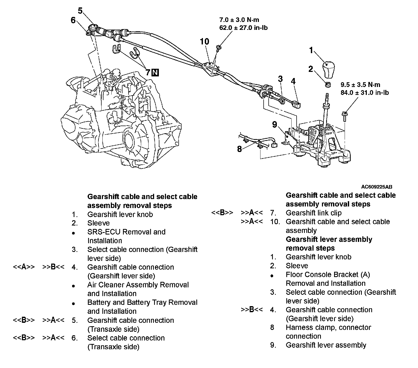 [A] GEARSHIFT CABLE DISCONNECTION (GEARSHIFT LEVER SIDE)