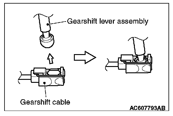 Insert the tip of the gearshift cable to the gearshift lever assembly thoroughly as shown until it clicks in place.