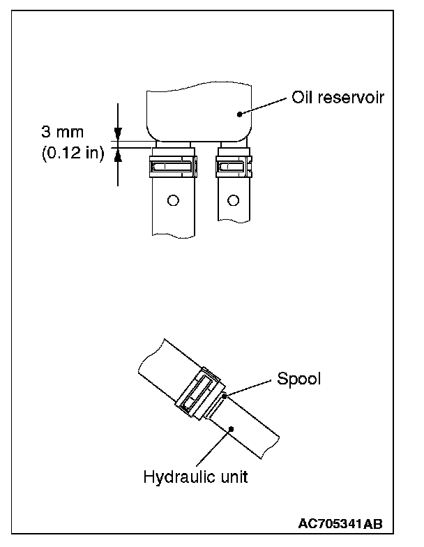 2. On the hydraulic unit side, insert the hose to the spool shown in the figure.