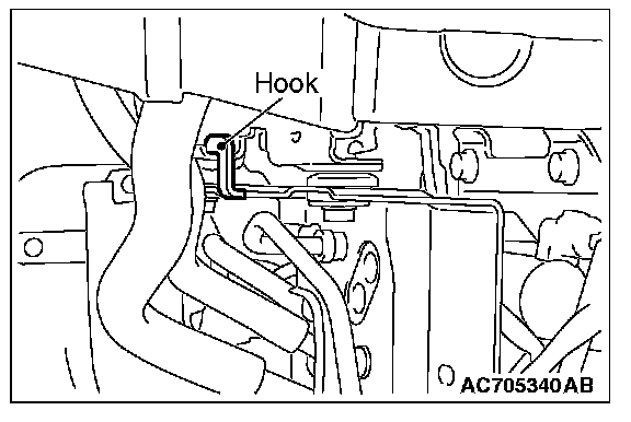 Insert the hook of hydraulic unit bracket B into the body panel, and tighten the mounting bolt.