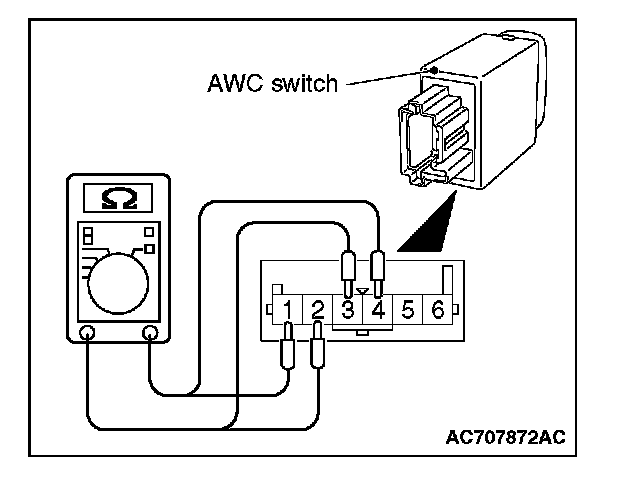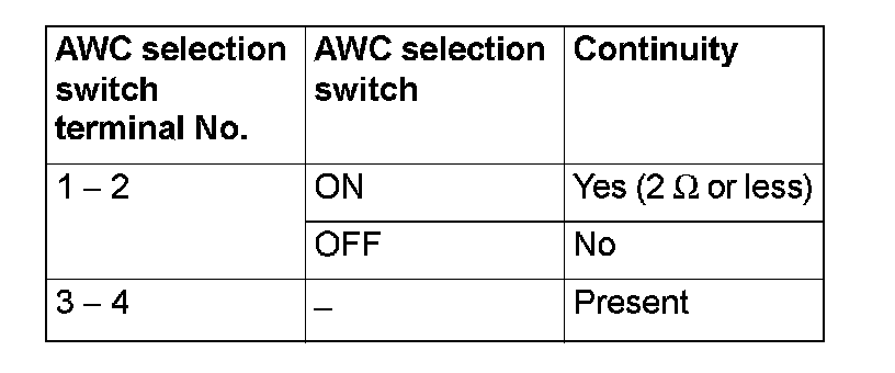 Check the continuity between the AWC switch connector terminals.