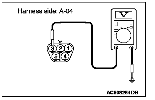 STEP 3. Check the ground circuit to the windshield wiper motor. Measure the voltage at the windshield wiper motor connector A-04.